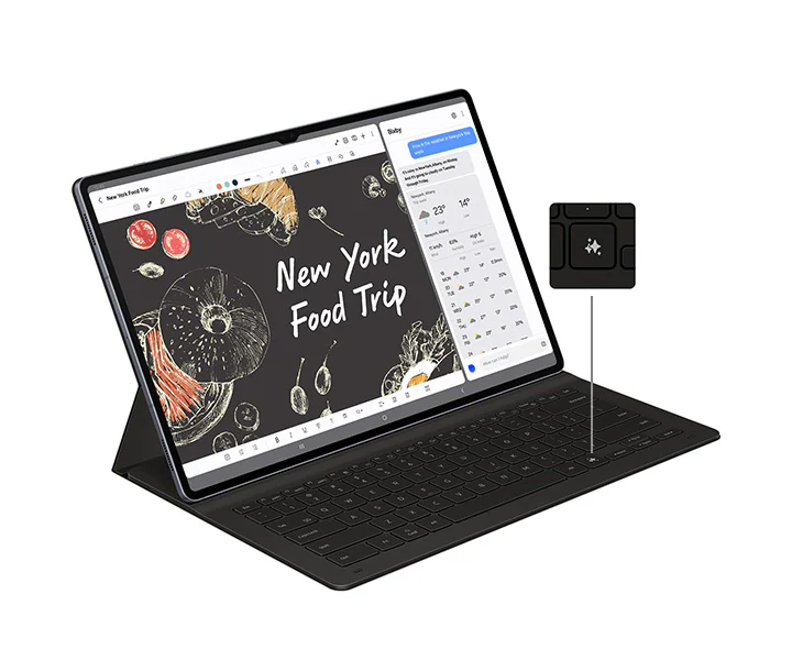 The Galaxy Tab S10 series is equipped with advanced processing power, featuring significant upgrades compared to the Galaxy Tab S9 Ultra. The Galaxy Tab S10 Ultra boasts an 18% increase in CPU performance, a 28% boost in GPU capabilities, and a 14% enhancement in NPU performance. This increase allows for faster and more responsive AI features, enabling users to access tools like the Galaxy AI Key on the Book Cover Keyboard, which simplifies interaction with the AI assistant through written prompts.