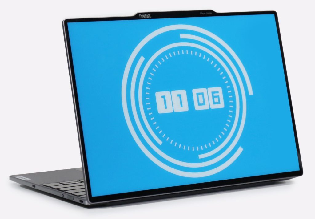 One of the standout features of the ThinkBook 13x Gen 4 SPE is its design, particularly the use of E-Ink Prism technology on the laptop cover. This allows users to display customized designs, animations, or even corporate logos on the back of their device. It’s a striking and innovative feature that adds a level of personalization not seen in most laptops. The E-Ink cover is not just for show; it also offers low power consumption, which doesn’t drain the battery unnecessarily.